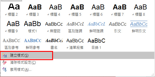 (若沒看到,同步驟2先點樣式區 的「其他」鈕來顯示所有樣式)