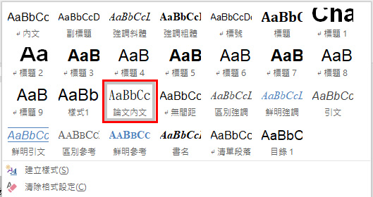 但對於長文件來說,因為很多段落的格式相同,將這些常用的段落及文字格式建立成「樣式」,