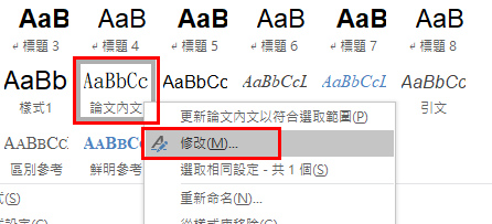 若要修改某一樣式,只要在樣式名稱上按右鍵選「修改」